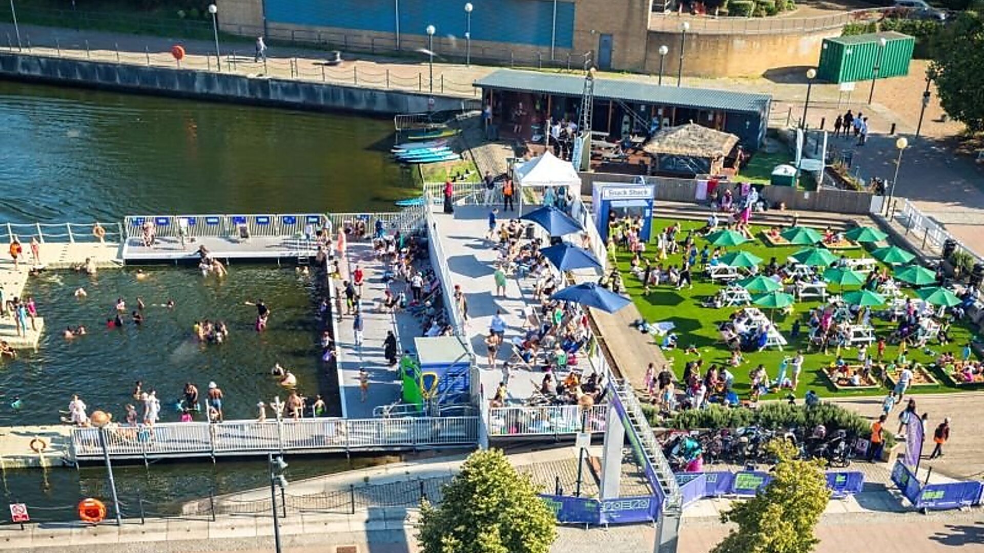 Glad to see the sun for this great event that we are thrilled to be a part of again, supplying a large lido built out into the waters of the Royal Docks. With client @BlissEvents and The Royal Docks Team.