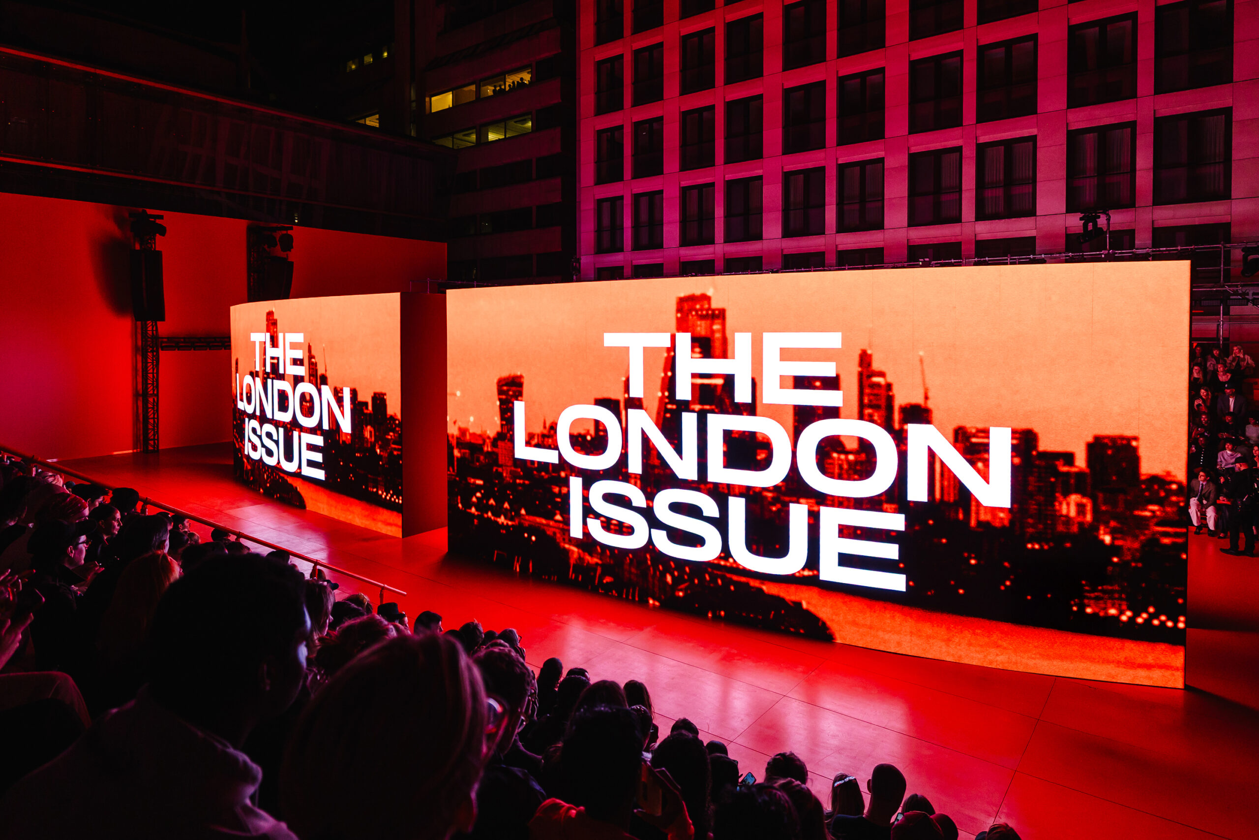 The installation transformed a restricted, high-activity worksite into a coherent runway environment for London Fashion Week.