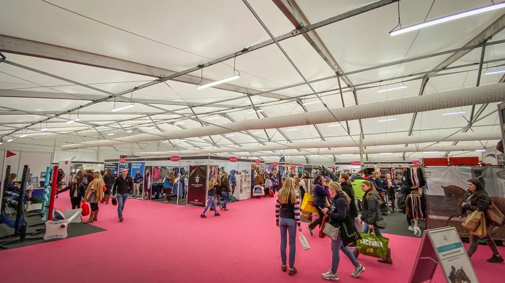 A 40m x 60m clearspan aluminium structure provided the ideal solution; additional snow-loading was factored in and elevated the solution from an ‘event’ structure to a permanent installation. This new structure provided the site with additional internal exhibition space and has already been used by exhibition clients including Your Horse Live.