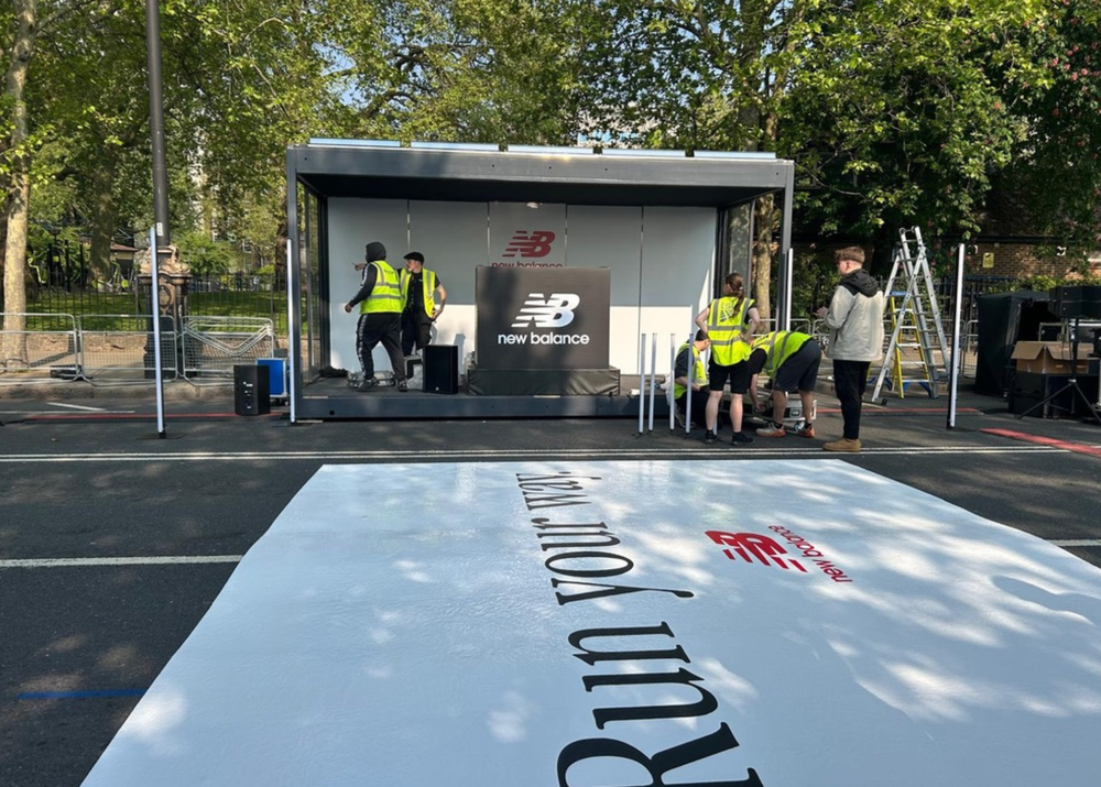 The result was a standout activation that maximised visibility and atmosphere, meeting the logistical challenges of the location while bringing New Balance’s brand presence to life on race day.