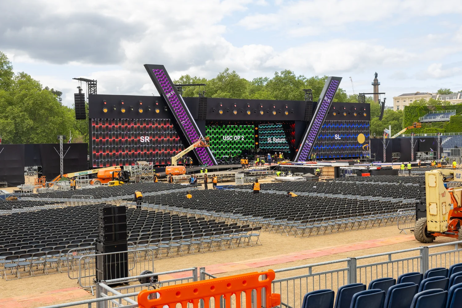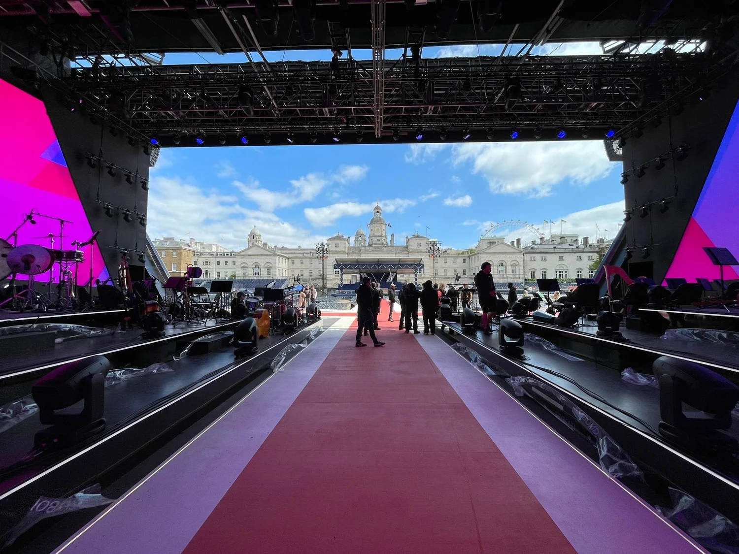 Delivery was further complicated by the nature of the location. Horse Guards Parade is a historic military ground in the heart of Whitehall, framed by government buildings and monuments. Logistics were highly restricted, with limited access for vehicles, heightened security protocols, and stringent time windows for deliveries and build activity. As a ceremonial space, the site could not be altered or damaged, meaning all infrastructure had to be non-invasive and fully demountable. The production also had to coordinate closely with military authorities to respect ongoing ceremonial duties and heritage sensitivities.
